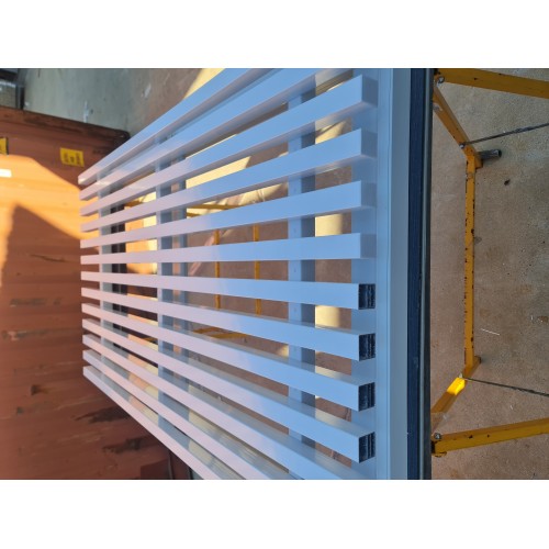 The multi-purpose top and bottom rail that we have developed have holes pre-punched every 40mm to give you a prefect vertical system that you can do DIY in any width or height that your job requires. These 2 horizontal rails per gate allow the batten facade to cleverly fit over the gate frame to give more batten coverage.